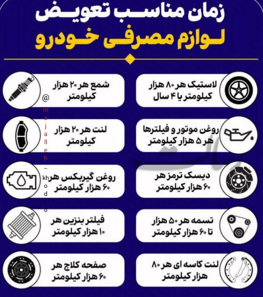 زمان تعویض هرکدام از لوازم مصرفی خودرو